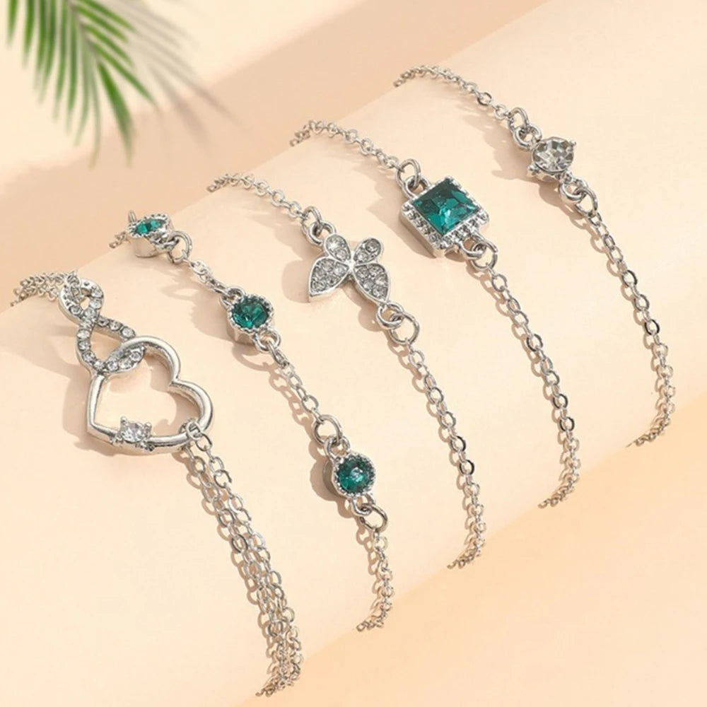 5-Piece Jade & Sparkling Bracelet Set